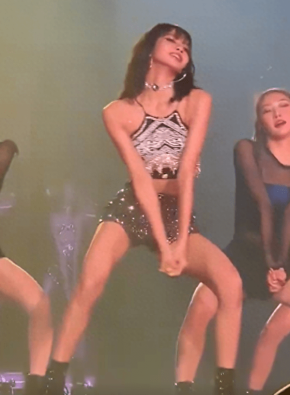 在集体秀中,Lisa头戴芭比粉色假发,可以看到所有的女孩子都是上身没穿衣服出镜,包括Lisa在内,而下身也只穿了一个丁字裤遮掩,比Lisa平日里开演唱会的尺度要大很多。