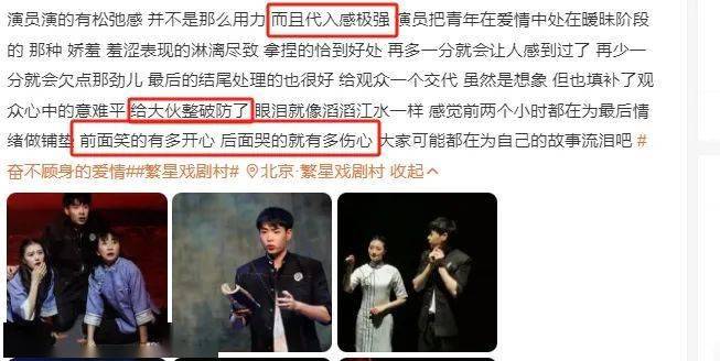 《奋不顾身的爱情》是繁星戏剧村导演黄彦卓广受好评的'人生冲动两部曲'之一,被很多观众用'一出喜剧泪如雨,两段爱情忆终生'来形容。