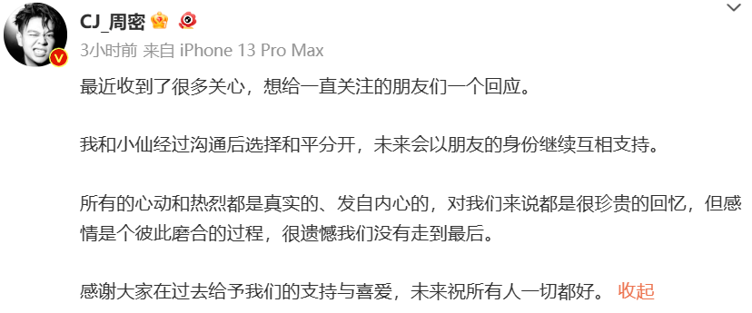 周芯竹和夏英歌的分手回应看完,字字句句都令人唏嘘。