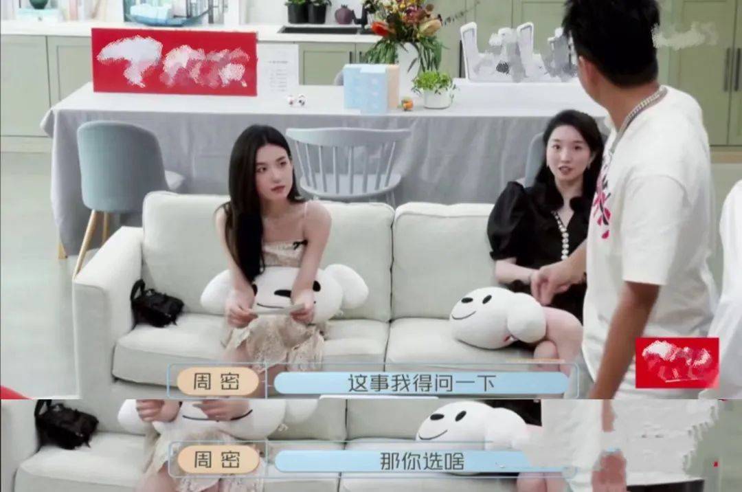 节目组让嘉宾选择活动,立刻转头问小仙选什么,主打一个“贴贴”。