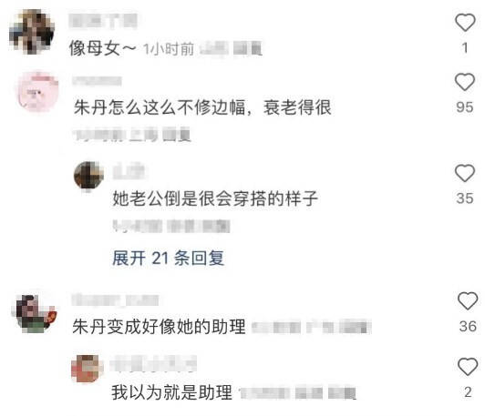再看朱丹,身高170cm的她站在178cm的奚梦瑶身旁看起来不算矮,但从穿搭来看明显被奚梦瑶比下去,有网友留言称站在奚梦瑶一旁的朱丹就像是奚梦瑶助理,还有网友更夸张地说两个人像母女,要知道朱丹只比奚梦瑶大8岁。