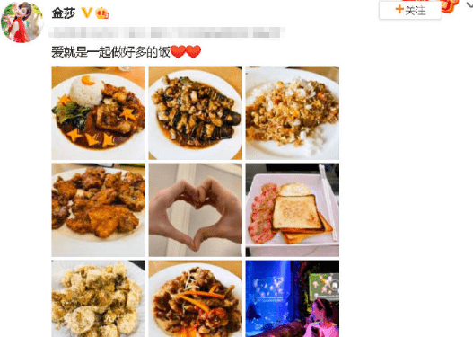 转眼与男友交往一年多的金莎,两个人感情看起来十分稳定,平日里她会分享一些男友做的美食照,此次两个人一同录综艺,他们也是穿着情侣装,相比其他几对已婚夫妻,正处于热恋期的两个人全程都黏在一起,很是甜蜜。