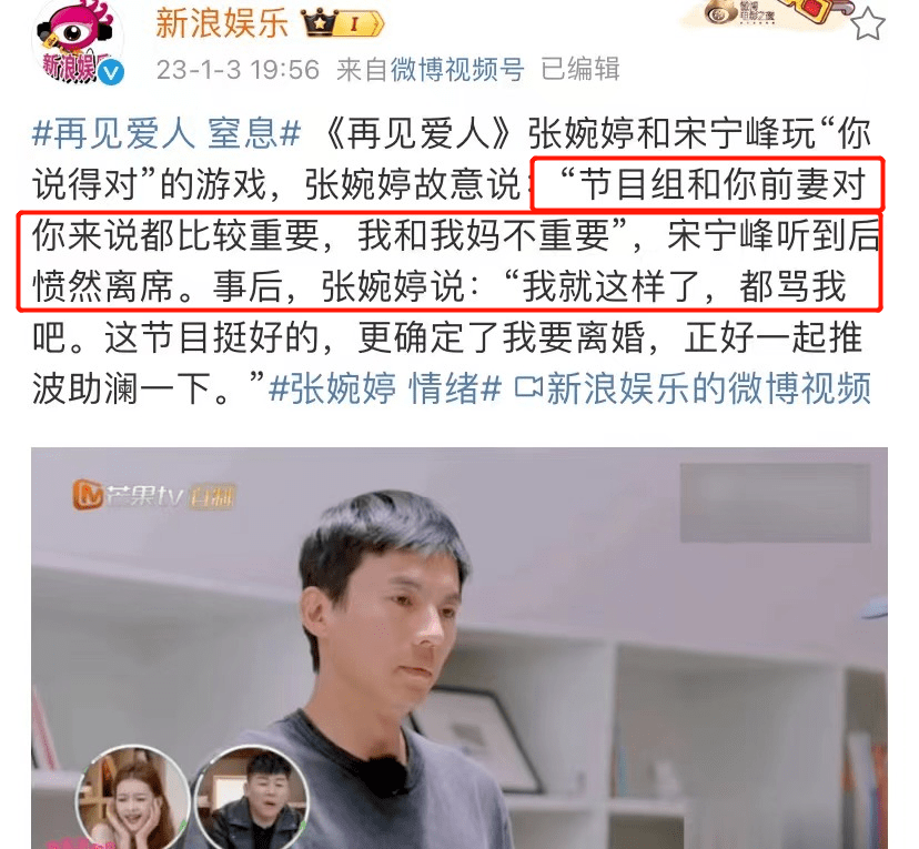 回看《再见爱人》里张婉婷和宋宁峰的表现,不少人想给他们颁发离婚证书。