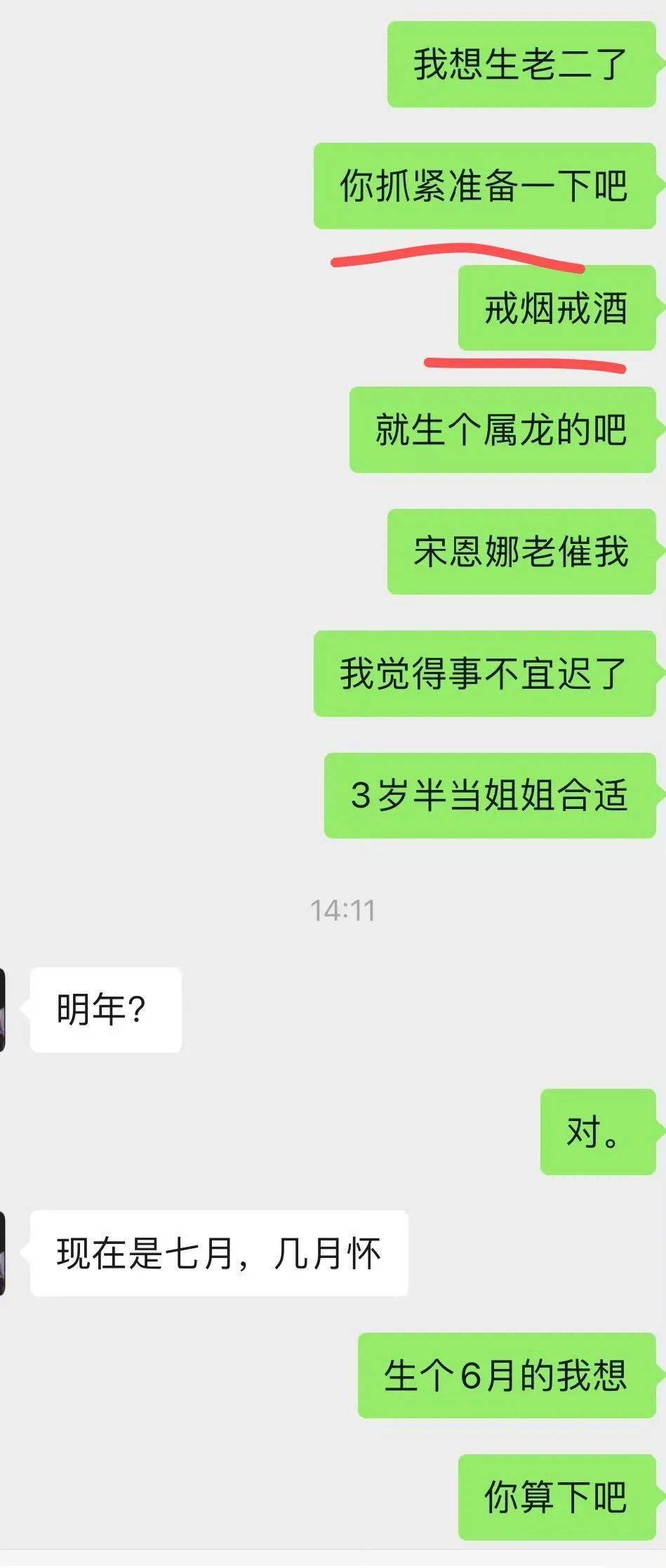 今年7月,张婉婷发博要准备生二胎,聊天记录里让老公戒烟戒酒、多健身。