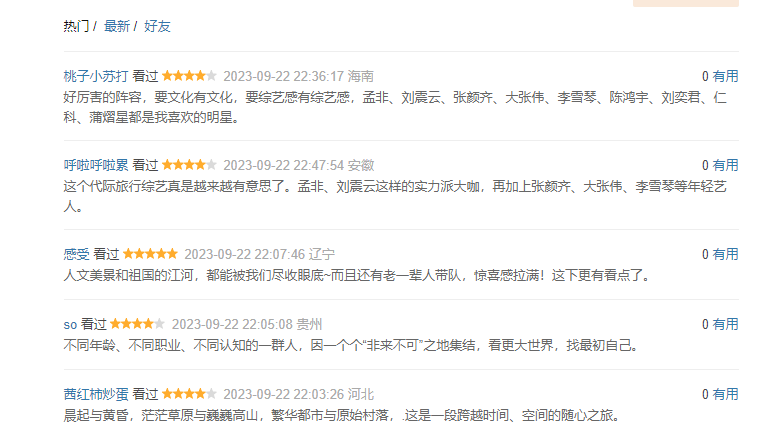节目播出之后,在豆瓣等处,形成了大量的四星和五星的好评。目前来看,说《非来不可》是清一色的观众好评,是成立的。如果这档综艺节目继续保持目前的观众口碑的话,它应该会成为今年观众评分最好的旅游综艺节目了。