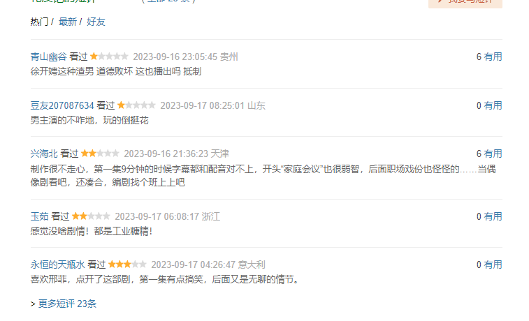 纵览这些评论,基本上都是一星或者两星的评价,即便是有观众给出三星评价,也在短评当中表示,这部电视剧的后续故事相对乏力,没啥看点等等。对于一部流量剧而言,出现了这么多的差评,是较为奇怪的事情。除非,剧作本身质量出现问题,同时,流量剧的演员出现了问题。