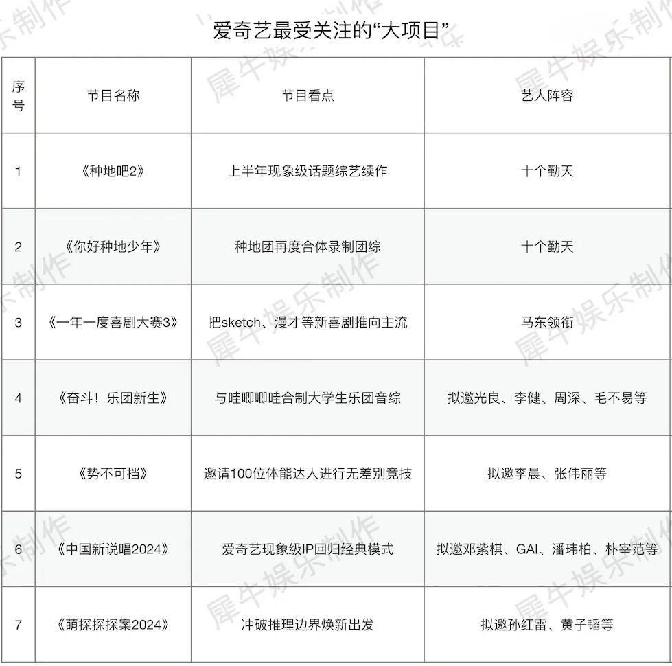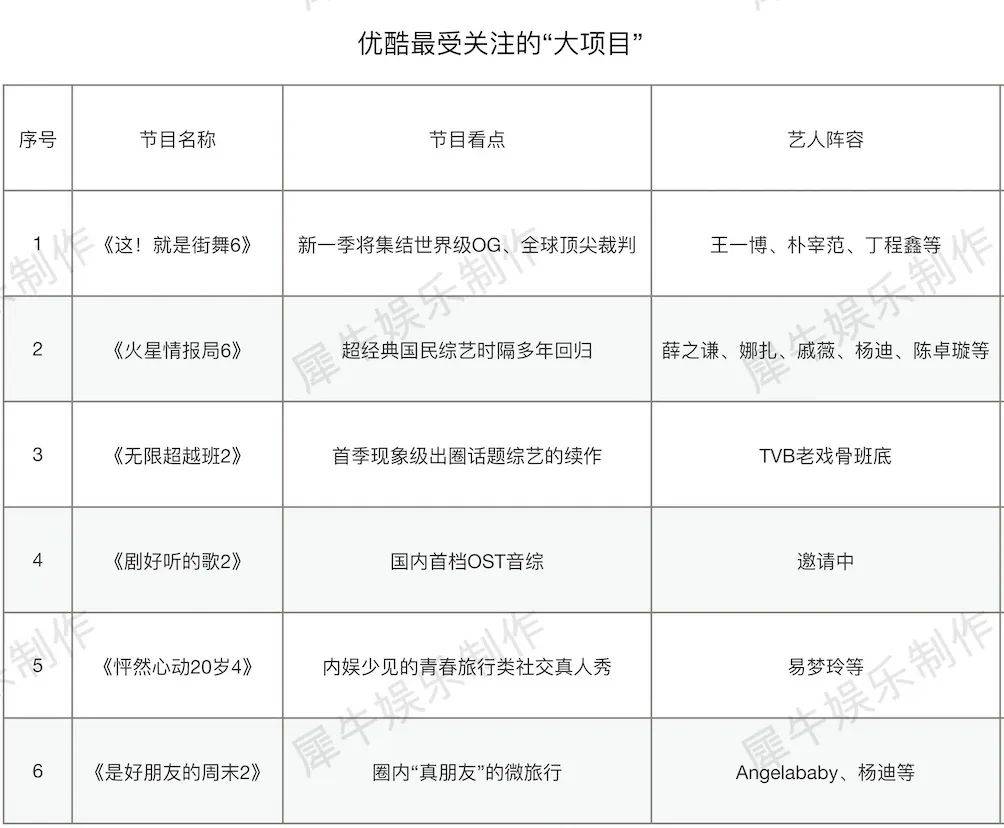 原标题:爱优腾百部新综片单,哪些项目最具吸金相