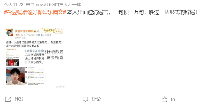 比起遮遮掩掩被拍到无数次愣是不承认恋情的那些个,彭彭 这回儿算是贡献出教科书版本的辟谣案例了。