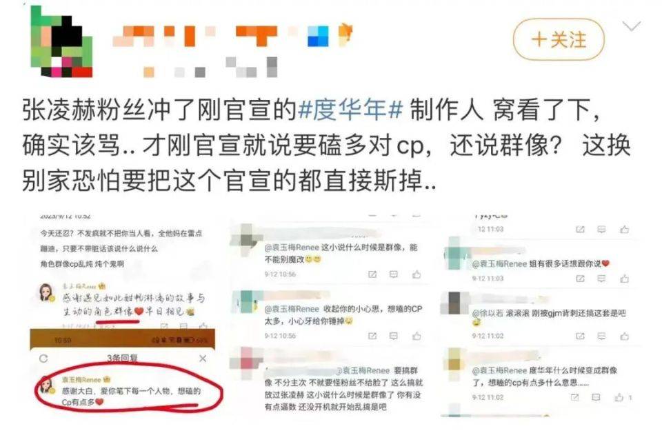最近,张凌赫和赵今麦的新剧《度华年》官宣后,制片人在微博评论里提到“角色群像”的字眼,还说自己“想磕的CP有点多”,粉丝直接对“群像”产生了应激反应,甚至开始在转评区提前“维权”。