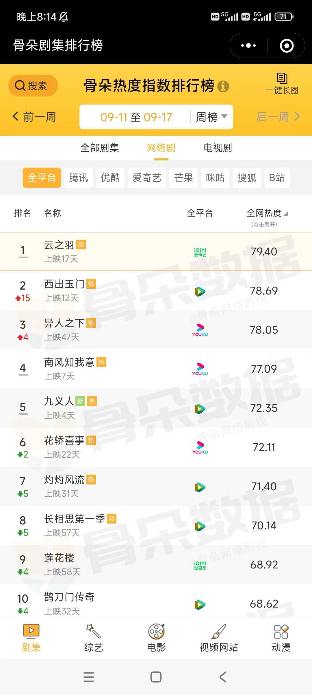 由虞书欣、张凌赫、丞磊、卢昱晓、金靖、孙晨竣、田嘉瑞领衔主演的江湖奇谋谍爱剧《云之羽》自开播以来热度始终兼居高不下,根据第三方平台“骨朵剧集热度指数周榜”(9.11-9.17)显示,《云之羽》自9月2日开播以来,连续17天霸榜日榜top1,连续两周稳坐周榜top1。在年榜上,尚未真正完结的《云之羽》全网热度也仅仅以微弱劣势屈居《长相思》之后,尚有弯道超车的机会。