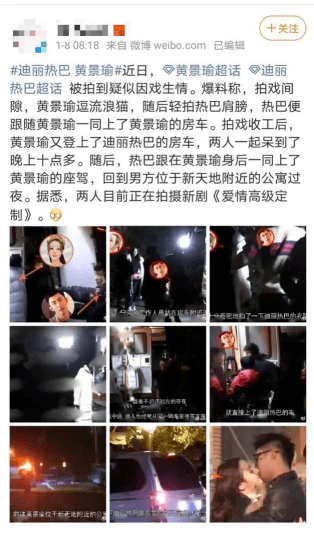 然而就在大家以为剧播完了,CP也不用炒了的时候,他们二人的绯闻又爆了出来。这次是有网友看见了黄景瑜的车停在了热巴的剧组,当时热巴正在与杨洋拍摄《你是我的荣耀》,所以他怀疑黄景瑜在探班热巴。