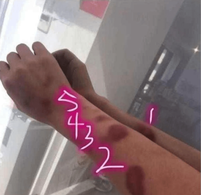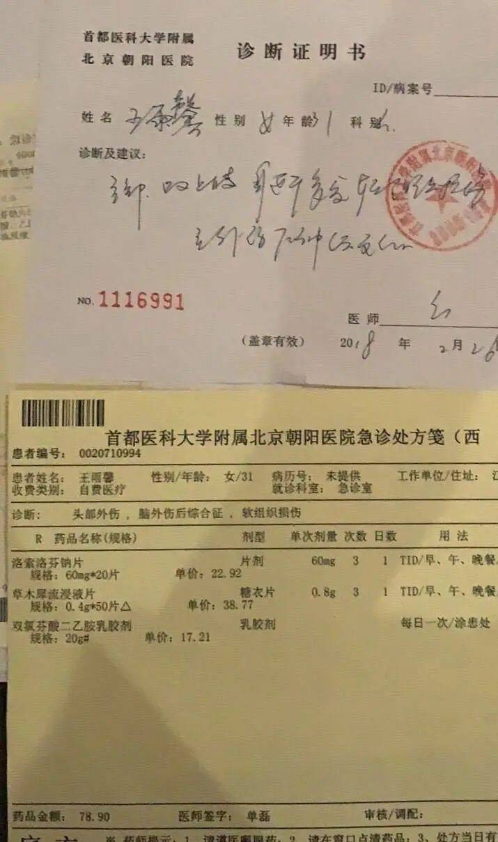 胳膊上受伤的照片以及医院的诊断证明。