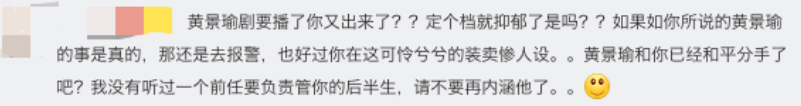 此动态发出后黄景瑜的粉丝瞬间占领了她的评论区。指责她出来卖惨,还称她是绿茶,总之就是言论非常不友好。