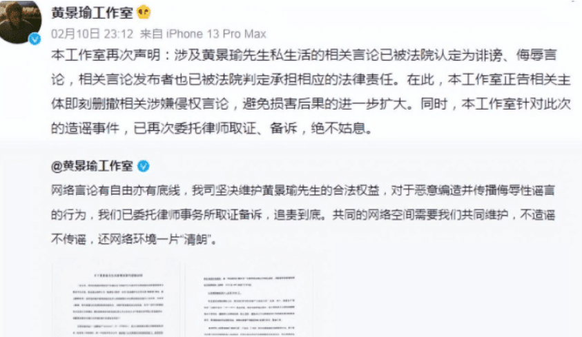 紧接着黄景瑜方也发布了一则声明,该声明更是直接给粉丝添了堵。他们二人的套路如出一辙,辟谣手法都一样,两份声明看似辟谣实则是让两人恋爱一事更加扑朔迷离。