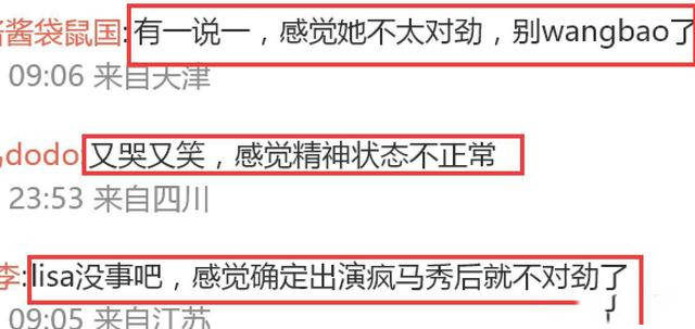 一些人更是觉得lisa自从疯马秀之后的精神似乎有点不正常,在舞台上一会儿哭一会儿笑的,情绪波动有点大了。