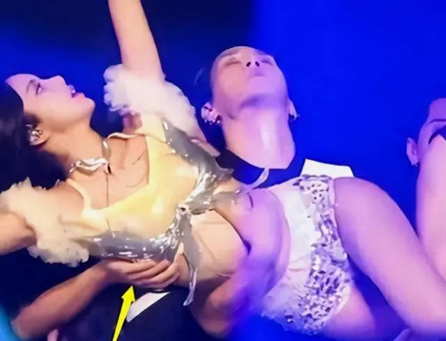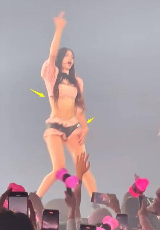 其中某个舞蹈中,lisa被几个男伴舞抱着,男舞者是上下其手,还有一只手看似是帮托着lisa,手却直接托在了胸部位置,引发不少粉丝不满。
