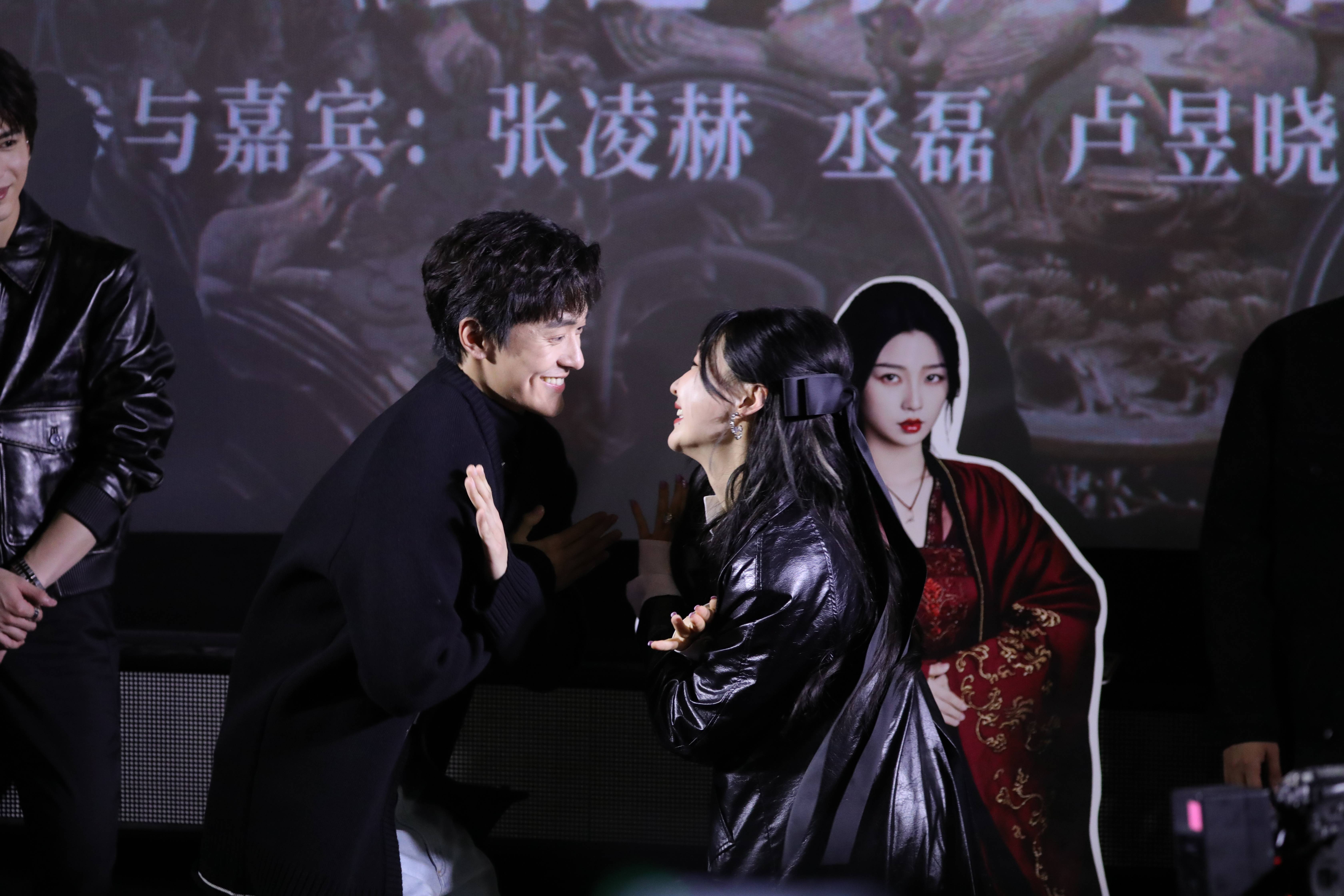 虞书欣因工作安排冲突未能到场,但人形立牌来到了现场,张凌赫也与云为衫的立牌共舞发糖。除此之外,张凌赫还现场唱起了《给我一首歌的时间》,听得现场观众连连起哄,夸赞其唱歌好听。得到表扬的张凌赫满脸质疑,反问观众“真的假的”,喜剧效果拉满。