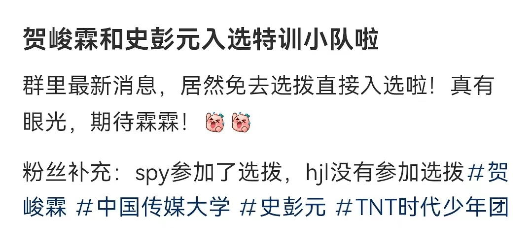 如此来看,贺峻霖应该是没参加选拔,接受了资源的倾斜,走后门入选特训队的。