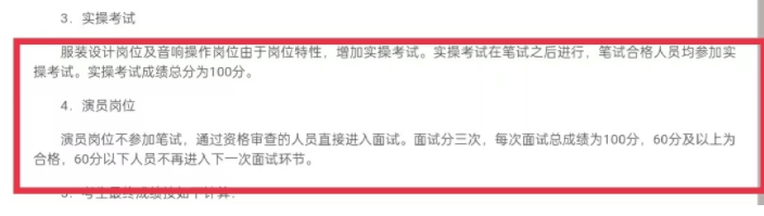 但国家话剧院对于排在前三名的易烊千玺、罗一舟和胡先煦三人,所应聘的“演员”岗位,设定了无需参加笔试,而是直接进入资格审查,然后进行面试的程序,面试共进行3次,每次面试总成绩为100分,达到60分即为合格。