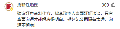 建议好声音制作方,找李玟本人当面好好谈谈,只有当面沟通才能解决得明白。找经纪公司隔着太远,沟通不彻底!