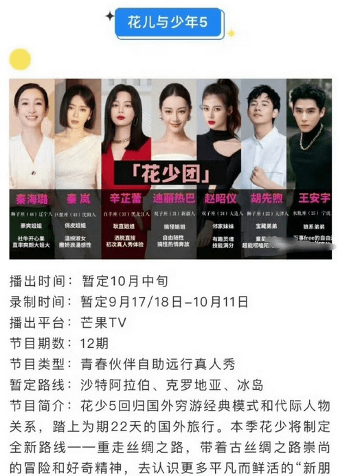 大家都知道,芒果TV一直有不少经典IP,比如《花儿与少年》,这个节目由“花少姐弟团”在没有经纪人、不准带助理、每天生活费有限的限制下完成各种任务,当年推出后很有看点。