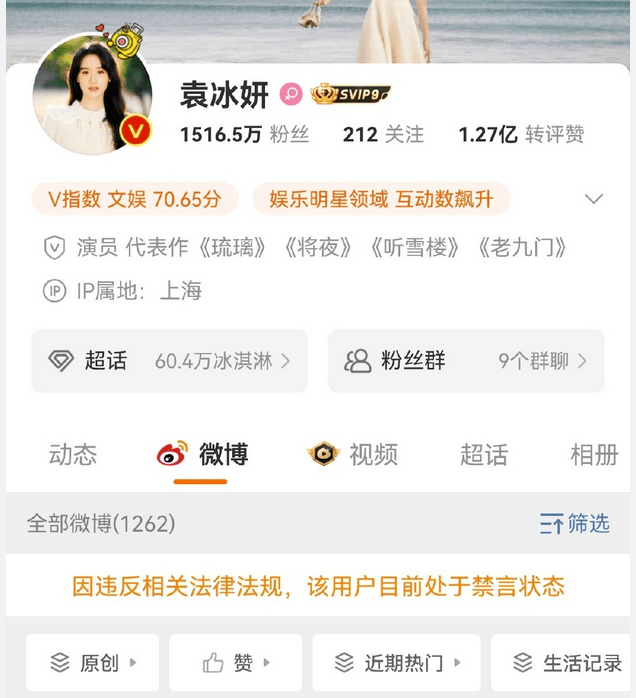之前袁冰妍的号还能正常更新,经过她最近的一系列洗白试水之后,终于求锤得锤,现在终于封号了,之后关于她的处理也不会有什么争议了,就是摆明了封杀,压得剧也播不了了。