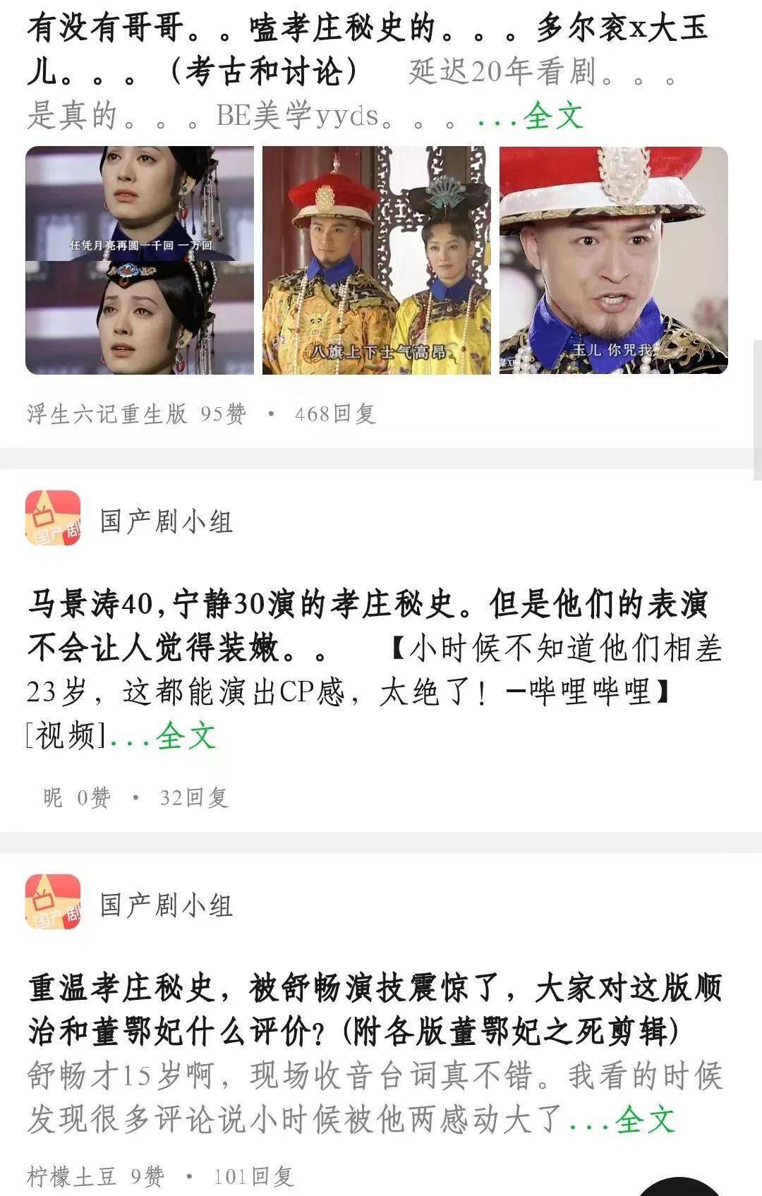 因为其剧情的精彩,即使二十多年过去了,延迟追剧以及嗑CP群体的出现,又让这部老剧不断散发出新的活力。特别是大玉儿和多尔衮之间爱而不得的情感经历,非常符合BE美学的追求,所以不断有各种帖子对该剧钩深索隐,挖掘各种细节。我们不禁要问,一部二十多年前的老剧,其旺盛生命力的背后,原因何在?