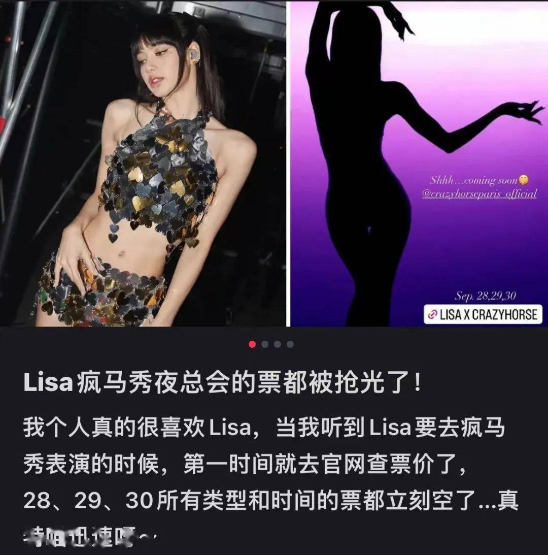 Lisa发出那条参加疯马秀的ins后,官网所有的票秒没。
