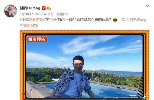 现在的付鹏也是过着非常舒服的生活,比如说之前前往海南去游玩,他拍摄了vlog,住的是一晚上多达6万元人民币的酒店,一般人真的是消费不起这样的酒店。