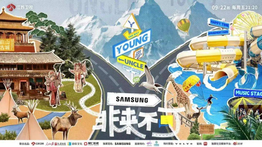 节目集人文与美景于一体,在欢笑与幽默中让观众感受到节目背后弥足珍贵的人文思想与价值导向,这从节目发布的手绘海报中可见端倪:从沙漠戈壁到冰川海洋,从荒野绿林到人文古迹,一边是现代化的旅游,一边是传统的观光,两条赫然不同的道路“uncle”与“young”指向了不同的旅途方向,展示的正是当下新一代与老一代人不同的人生见解与文化思想。