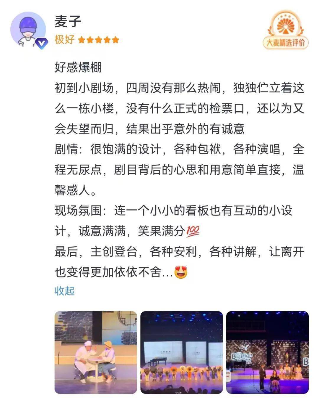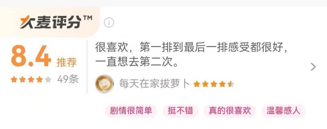 首演之后取得了大麦8.4、猫眼9.9的高分!