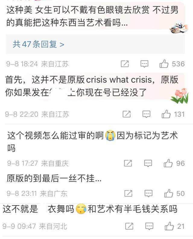 其实看看疯马秀的过往视频,就不难理解大众的抗拒心理。最近在网络疯传的蒂塔·万提斯的疯马秀视频,虽然只是纯净剪辑版,但看过之后,网友纷纷质疑这和艺术有什么关系,更直言现场的男士会用何种眼光来欣赏呢。另有网友声称原版视频远比这段更没底线,最后表演者就是“赤诚相见”的身体状态。