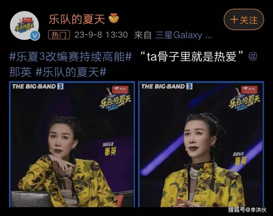 在9月8日,《乐队的夏天》官方微博发布了两张那英的录制节目照片,并配文“ta骨子里就是热爱”。从照片中我们可以看出,那英妆发精致,状态在线,脸上丝毫没有疲态。