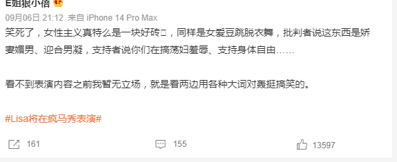 第一种,就是粉丝洗地这是艺术,这是女性意识觉醒,这是play自由!