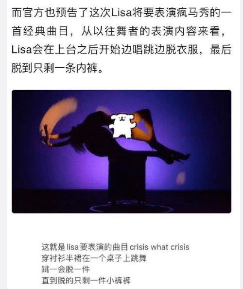 说给Lisa的表演服饰太短了,有性暗示啦,媚男啦