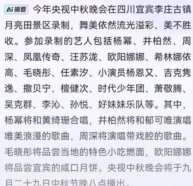 如今媒体发布最新消息,今年的中秋晚会选择在四川宜宾李庄古镇,选择在风景秀丽又有历史文化积淀的古镇,相信今年的中秋晚会一定会给观众带来很多的惊喜。