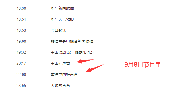 9月9日,也就是本周六,下午的四点钟,中国好声音2023年播出,没有注明首播还是复播