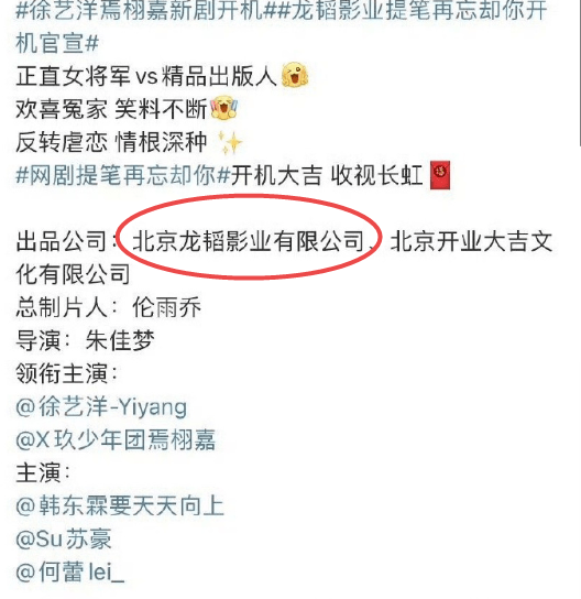 原标题:徐艺洋焉栩嘉新剧开机,细看幕后出品方是黄子韬公司,霸总实锤了