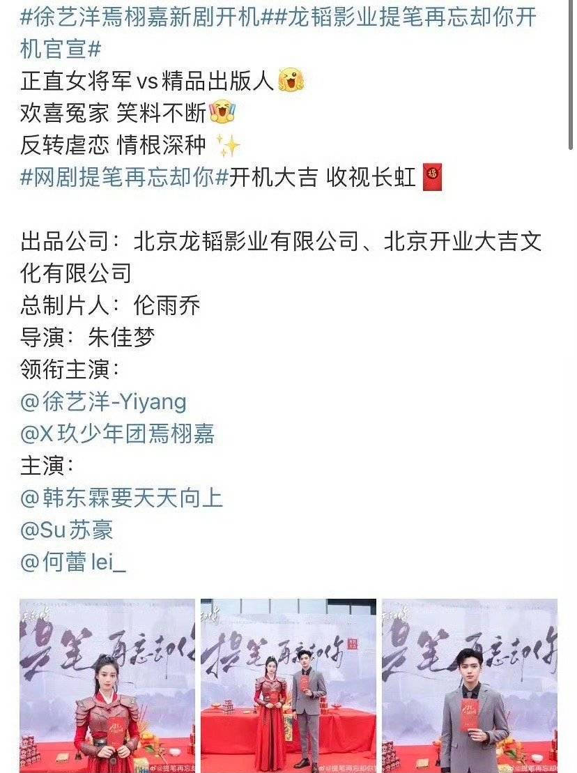 原标题:徐艺洋主演新剧开机 出品方为黄子韬名下公司