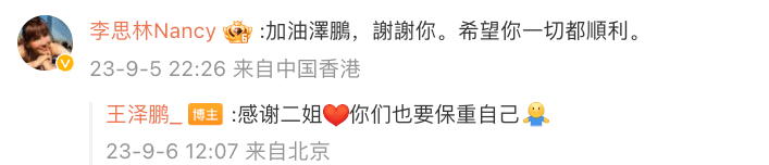 对此,李玟二姐李思林现身评论区回复:“加油泽鹏,谢谢你。希望你一切都顺利。”