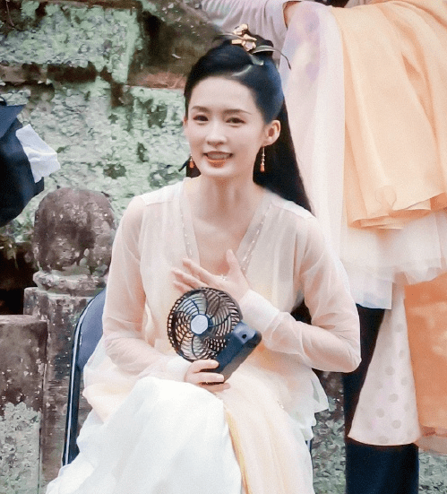 王楚然一身淡粉色古装造型亮相,整张脸的清冷感还是有的。