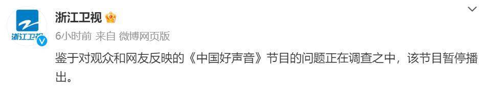 8月25日浙江卫视官博发出公告,2023《中国好声音》正式暂停播出。