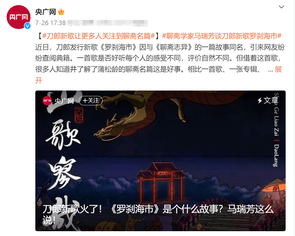 3天后,新专辑中的《罗刹海市》开始刷屏,掀起了全民解读风潮。当然“复仇论”最盛,也是让那英、汪峰、杨坤、高晓松短视频账号评论区沦陷。除了民间普通民众解读,包括各大官媒、专家学者也都纷纷解读,从更为专业、深层次方面进行着点评,极大拓展了《罗刹海市》的边界。