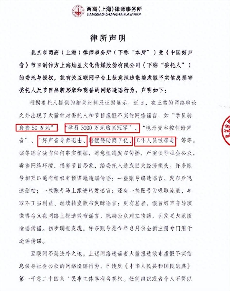 原标题:《好声音》律所声明打脸传闻,辟谣传闻坚决维护节目公正!
