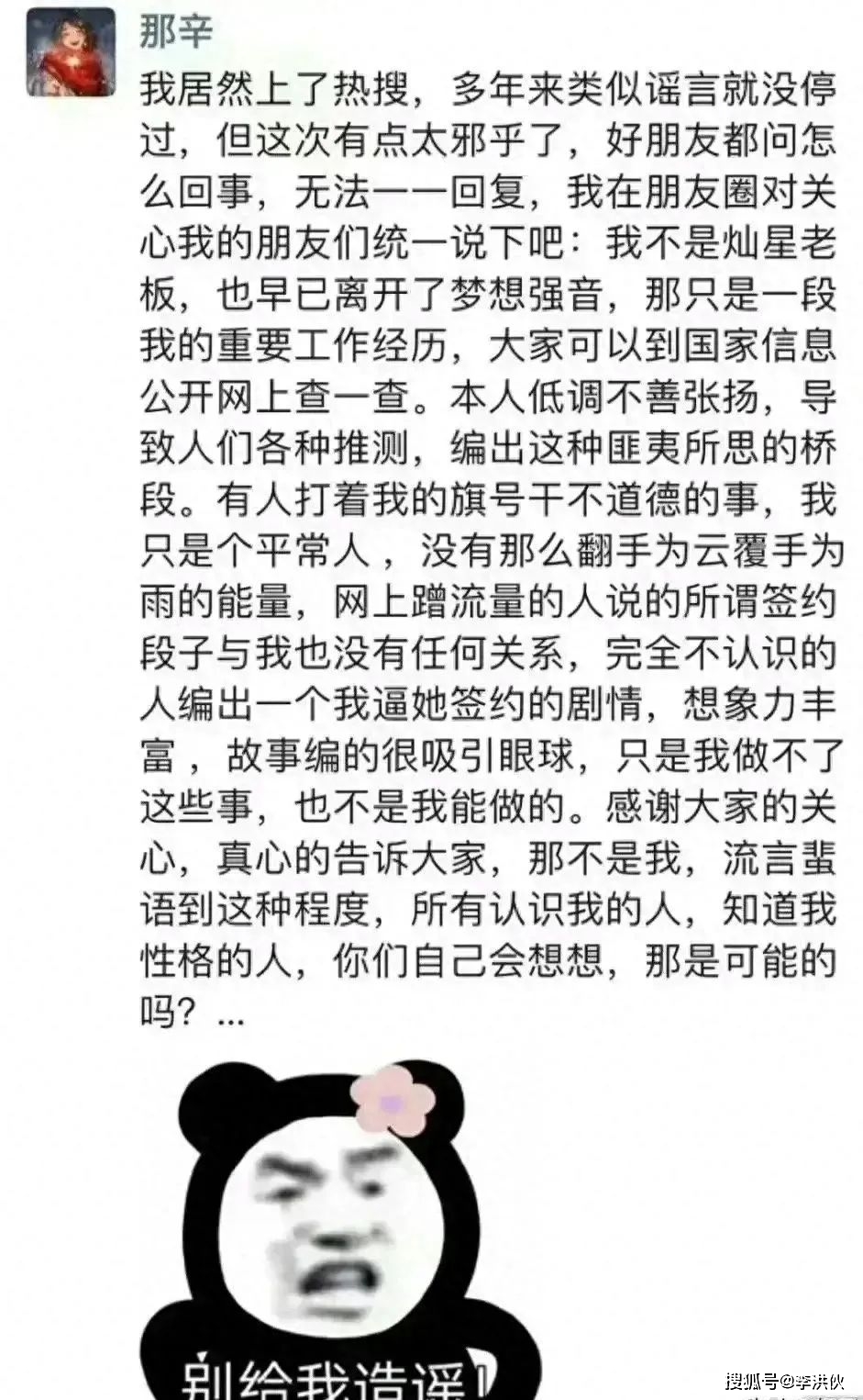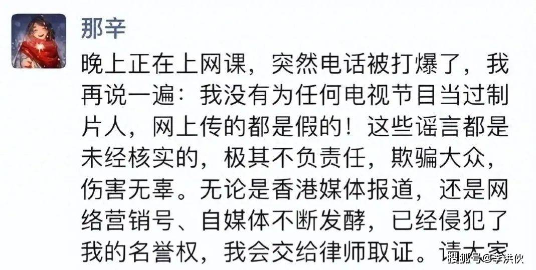 不过很快,就有博主表示,那辛已经在朋友圈辟谣了这条言论。