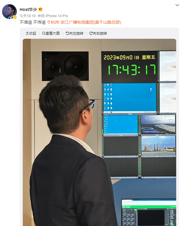 9月1日,有传主持人华少被带走调查,他发文否认,并公开上班照片辟谣。