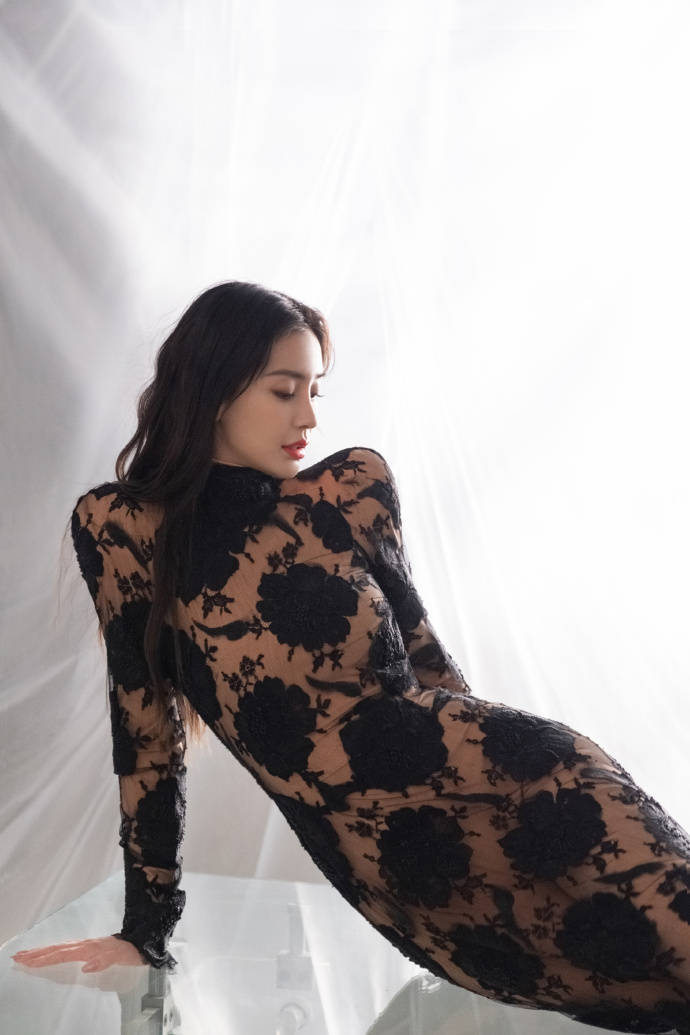 Angelababy穿着黑色的薄纱镂空连衣裙,这修身的服饰也将她凹凸有致的好身材完美的展示出来,坐在玻璃茶几上,也如同刚刚越出水面的美人鱼了,就连她自己也忍不住的低头欣赏,这样的身材也让人羡慕。