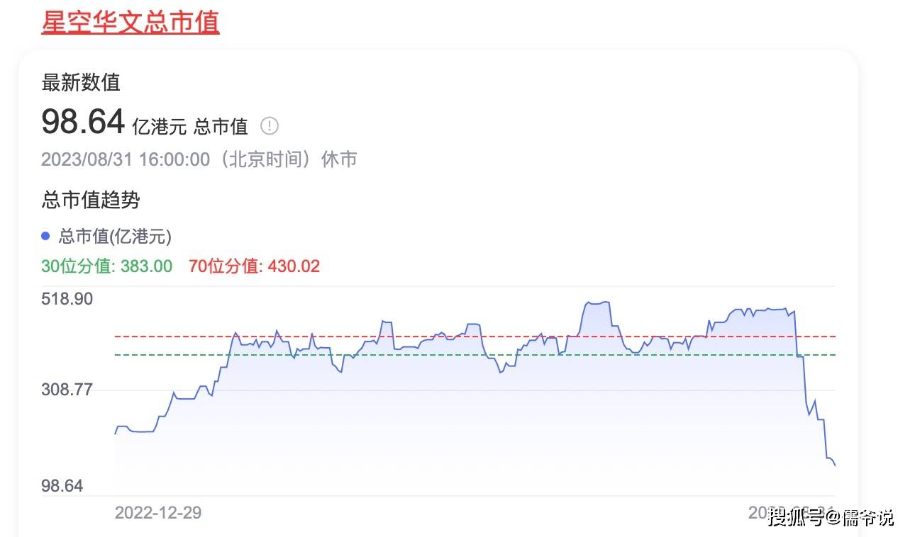 其实事情发酵后,不仅仅华少评论区沦陷,《中国好声音》节目制作方的母公司星空华文这几天也遭到了资本的狙击,股价更是跌破了发行价。市值从之前的480亿港币跌到了98.64,市值蒸发了80%,而看趋势,应该还有进一步下探的空间。这波星空华文可以说是血本无归了。