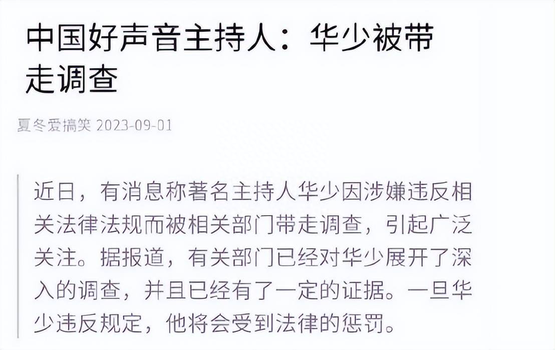 9月第一天,网上突然曝出《中国好声音》主持人华少被相关部门带走调查,引发网友围观。