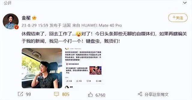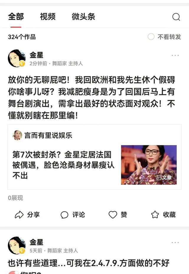 原标题:金星怒斥键盘侠贱货!否认沧桑暴瘦是被封杀定居法国